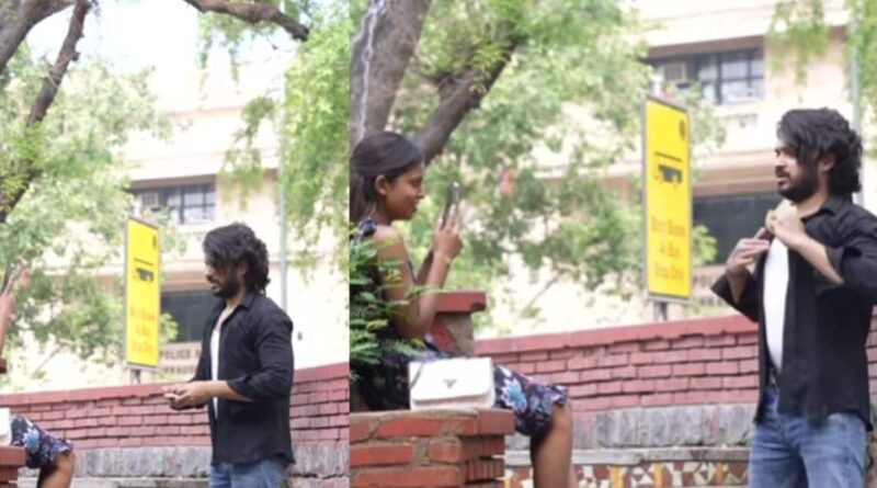 वीडियो में एक लड़का एक लड़की के पास आकर अपना मोबाइल देते हुए कहता है, “मैडम जरा वीडियो बना देना. यहीं से बैठकर बना दो” इसके बाद लड़की मोबाइल पर वीडियो बनाने लगती है और लड़का पहले पूछता है, “अच्छा ये बताओ गरीब तो लग रहा हूं ना मैं?” इस पर लड़की कहती है, “हां, गरीब लग रहे हो.”  इसके बाद लड़का सिर के बाल झटक कर कहता है, “अब लग रिया होंगा. अरे औजार तो निकाल लूं अपने” इसके बाद वह जेब से पत्थर निकालता है.
