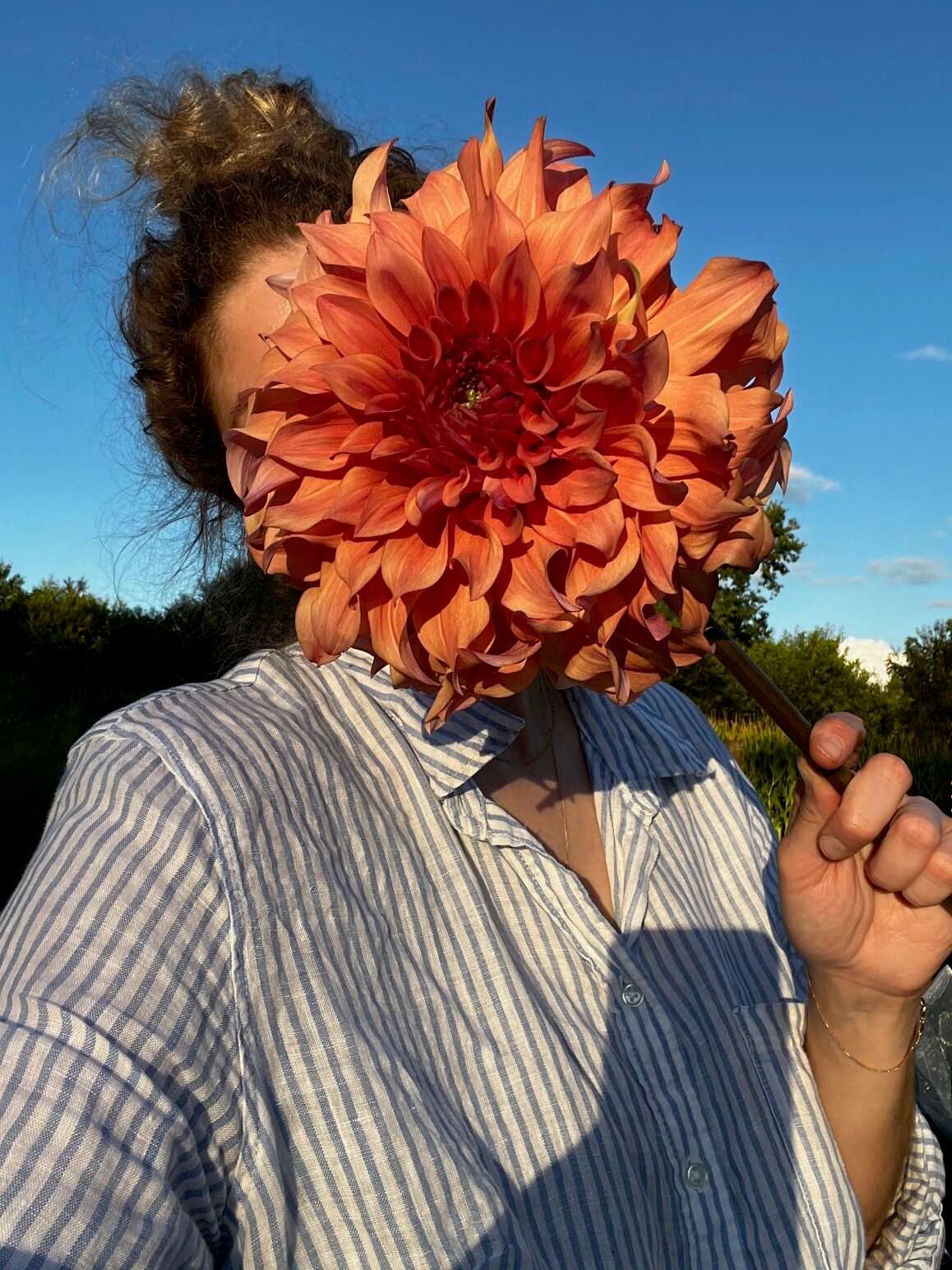 Says Lauren (two photos, above), who lives in Roland, Iowa, “I’m so excited to begin my second year of growing dahlias in the garden my grandfather nurtured for years. Last year I planted about 70 tubers, and it was the most magical experience. I dug them all up in the fall, divided them and stored them in my ancient basement with my fingers crossed all winter. By some miracle, a majority survived! So, in the next two weeks, I’m going to be planting about 100 additional – 175 total – tubers. Wish me luck!”