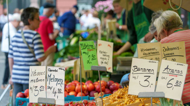Rhineland-Palatinate, Mainz: Fruit is sold at the weekly market. Andreas Arnold/dpa | Picture Alliance | Getty Images German inflation fell