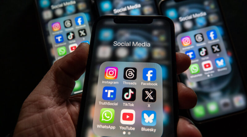 In this photo illustration, iPhone screens display various social media apps on the screens on February 9, 2025 in Bath, England.