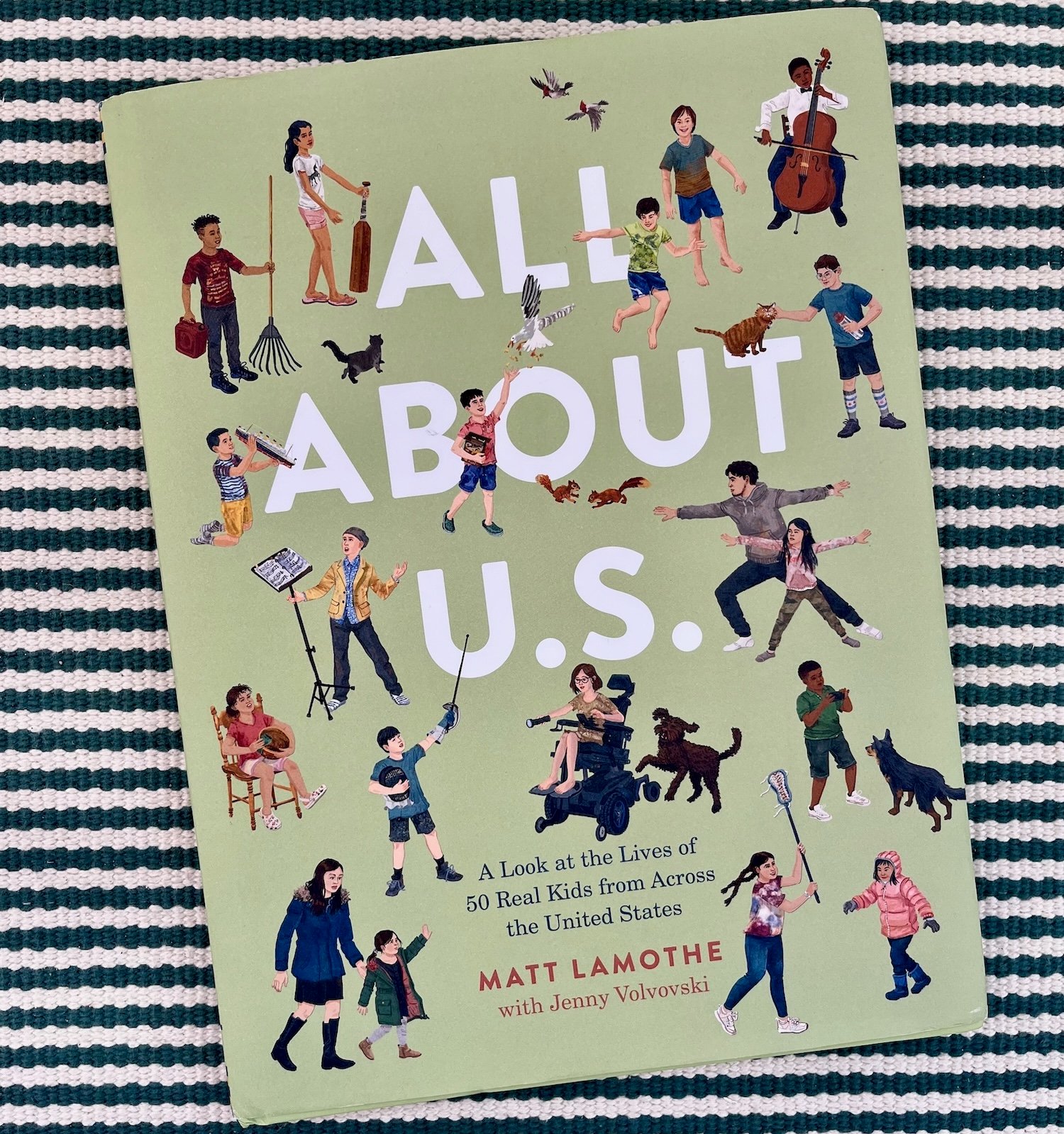 We were lucky enough to get an early copy of All About U.S.: A Look at the Lives of 50 Real Kids from Across the United States, and my boys have already pored over it 100 times. Our favorite spread might be this one of a family in Maine. How dreamy does that look?