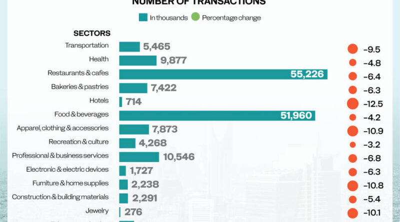 In Jeddah, transaction values decreased 8 percent to SR1.69 billion, while Dammam reported a 7.9 percent contraction to SR619.68 million. Other cities, such as Makkah and Madinah, also recorded notable declines in consumer spending, down 7.8 percent and 7.9 percent, respectively. Tabuk followed with an 11.5 percent decline.