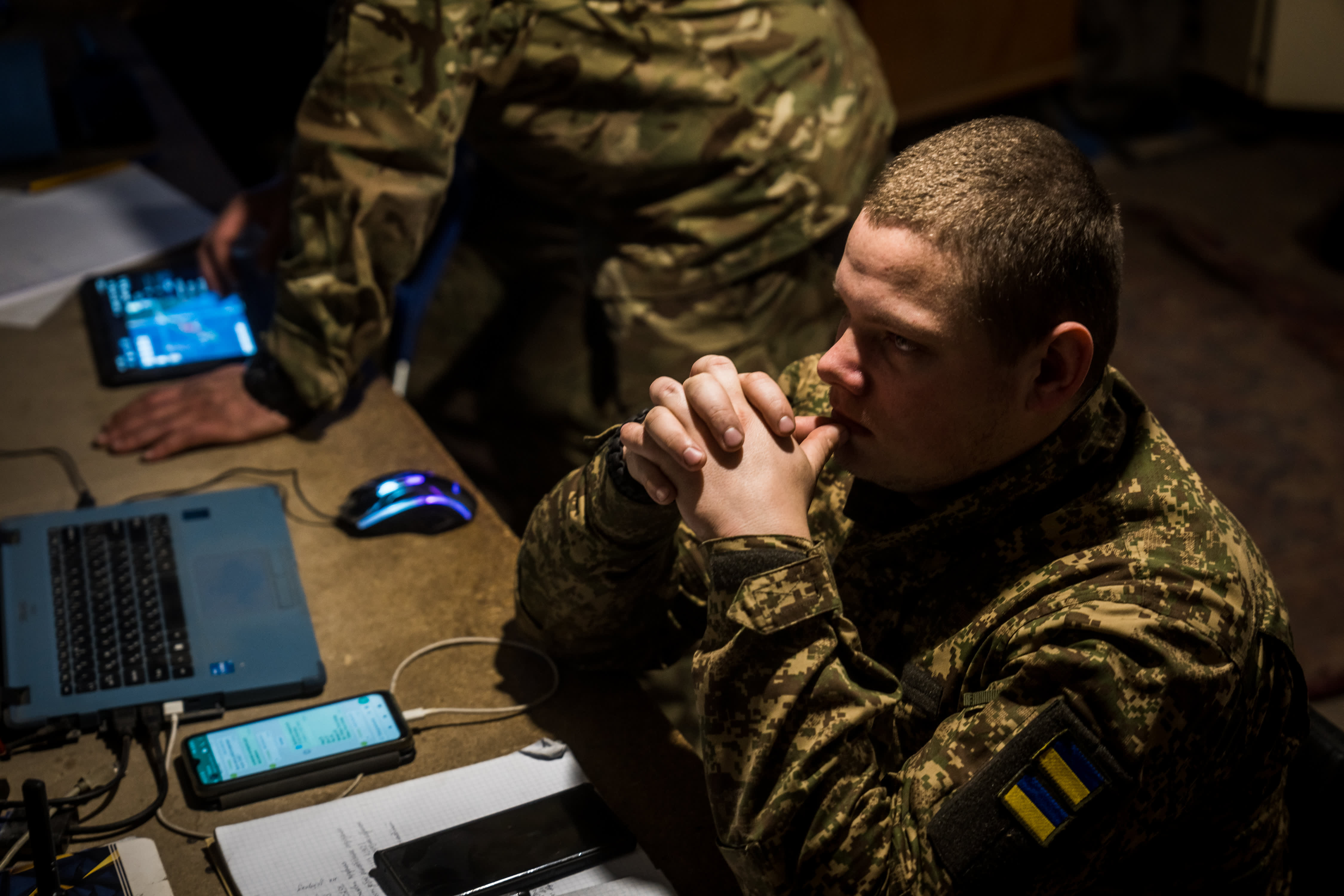 Ukrainian servicemen monitor the situation along the front via drones in the direction of Kreminna, Ukraine as Russia-Ukraine war continues on 31 March 2024.