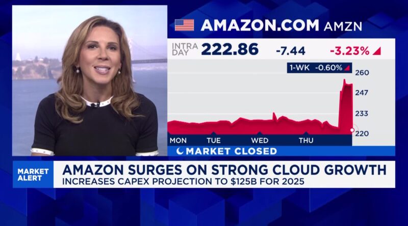 Amazon saw its stock soar after the company beat on earnings and revenue, and said capex this year will be about $125 billion, up from a prior forecast of $118 billion.