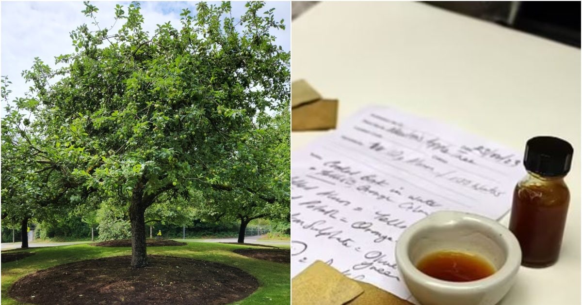 Newton’s apple tree ink: कैम्ब्रिज यूनिवर्सिटी के बोटैनिकल गार्डन में रहने वाले आर्टिस्ट ने एक अद्भुत चीज बनाई है. उन्होंने वैज्ञानिक सर आइजक न्यूटन के सेब के पेड़ के क्लोन से सुनहरी पीली रंग की स्याही बनाई है, जो पिछले साल तूफान यूनिस (Eunice) के दौरान गिर गया था. यह कारनामा करने वाले आर्टिस्ट का नाम नबिल अली (Nabil Ali) है, उन्होंने इस स्याही को ‘न्यूटन का सोना’ कहा है.