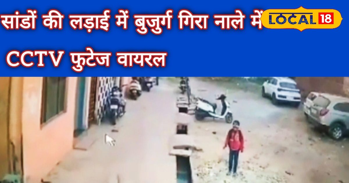 इसी दौरान, साइकिल पर सवार एक बुजुर्ग दो सांड की लड़ाई से अनजान गली से गुजर रहे होते हैं, तभी लड़ते हुए सांड तेजी से बुजुर्ग की साइकिल से टकरा जाते हैं. बुजुर्ग का संतुलन बिगड़ता है और वह सीधे नाली में साइकिल सहित गिर जाते हैं. बुजुर्ग नाली में ही फंसे रहते हैं और सांड उनके सामने लड़ रहे हैं. ऐसे में बुजुर्ग बेहद घबराए नजर आ रहे हैं.