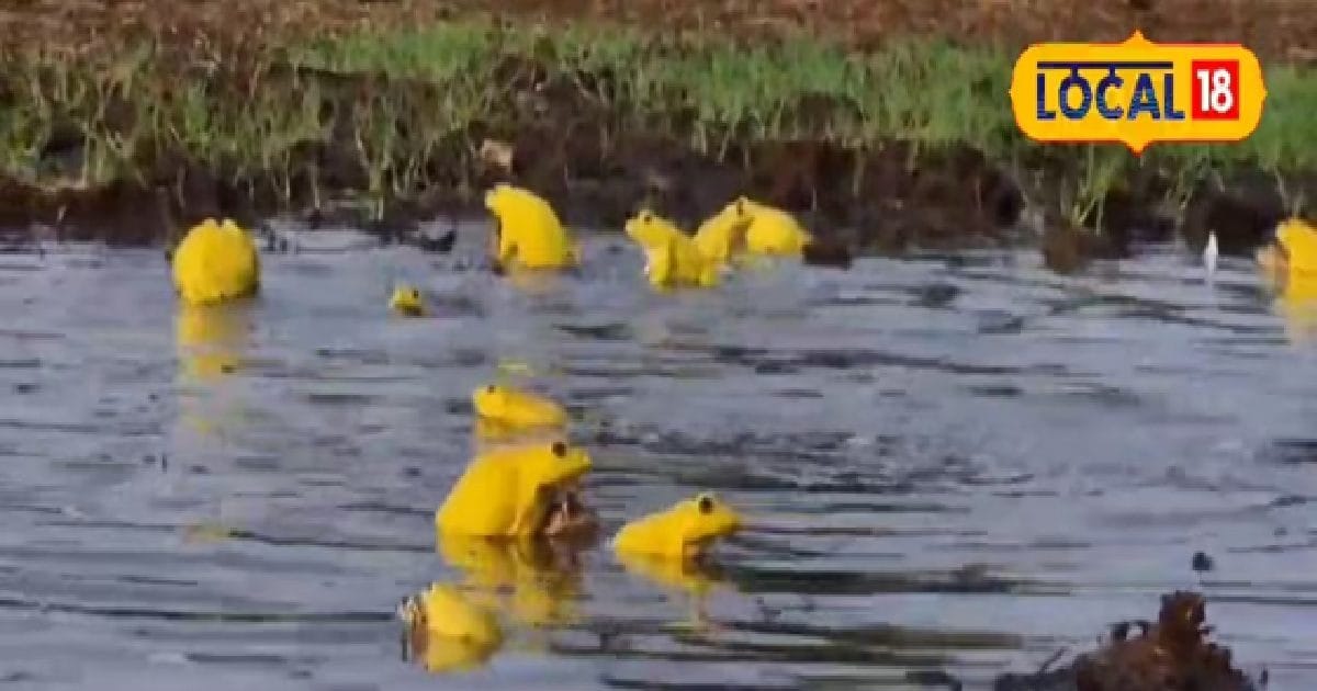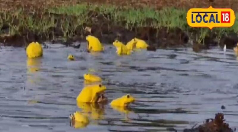 Indian Bull Frog: खरगोन के भीकनगांव में तालाब के किनारे जब पीले रंग की चमक और बड़ी कद-काठी वाले इस दुर्लभ मेंढक को देखा गया, तो लोगों की भीड़ जुट गई. वे इसकी फोटो लेने लगे और वीडियो बनाने लगे.