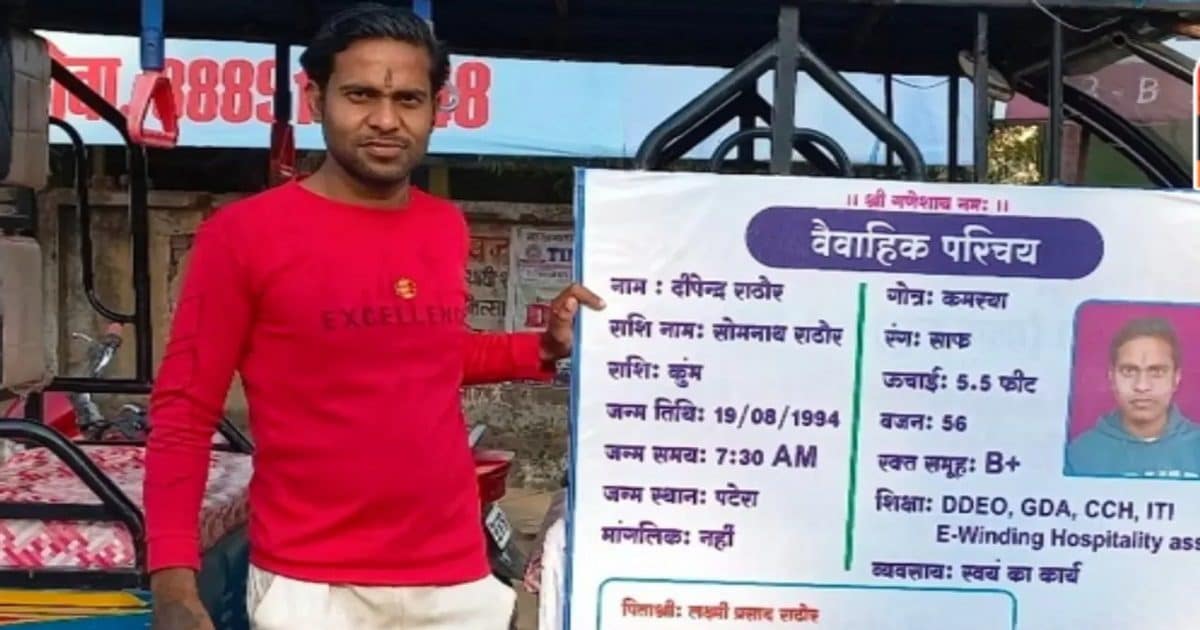 तीस की उम्र में जब दीपेंद्र राठौर नाम के इस शख्स की शादी नहीं हुई, तो उसने एक अनोखा तरीका अपनाया. दीपेंद्र ने बताया कि उसके घर वाले कई जगह उसकी शादी की बात चला चुके थे. लेकिन हर बार किसी ना किसी कारण से रिश्ता टूट जाता था. लोग उसे ताने देने लगे थे. ऐसे में उसने एक अनोखा रास्ता अपनाया. दीपेंद्र ई रिक्शा चलाता है. ऐसे में उसने अपने रिक्शा के ही पीछे अपनी शादी के लिए बायोडाटा लगा दिया.