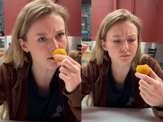 इंस्टाग्राम अकाउंट @veggmomo एक भारतीय लड़के का अकाउंट है जो कनाडा में रहकर पढ़ाई कर रहा है. लड़का अक्सर अपनी कनेडियन दोस्त को भारतीय चीजें खिलाते हुए उसका रिएक्शन कैमरे में रिकॉर्ड कर लेता है और सोशल मीडिया पर पोस्ट करता है. हाल ही में लड़के ने दोस्त को बूंदी का लड्डू खिलाया. लड़की का रिएक्शन बहुत मजेदार है.
