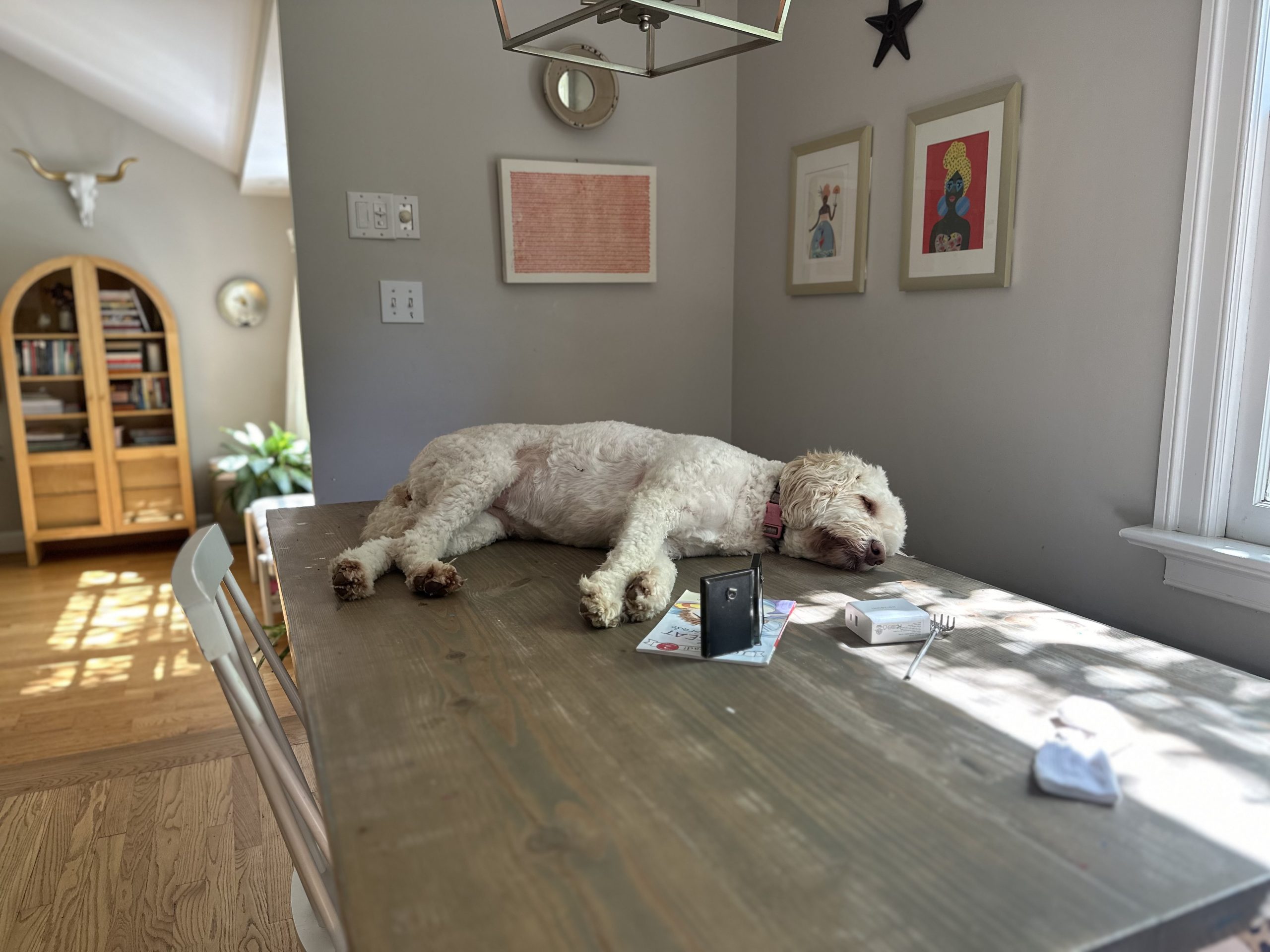 “I’ve moved once a year since 2018, but this past winter I landed somewhere that’s safe and mine for as long as I want. One afternoon, I caught my eight-year-old dog, Twyla, enjoying the sunshine on thrifted furniture that’s been remixed so many times in so many apartments. I think in that moment, we both shared the same thought, ‘Yeaaaah, buddy, we’re home.’” — Kelsey, Providence, Rhode Island