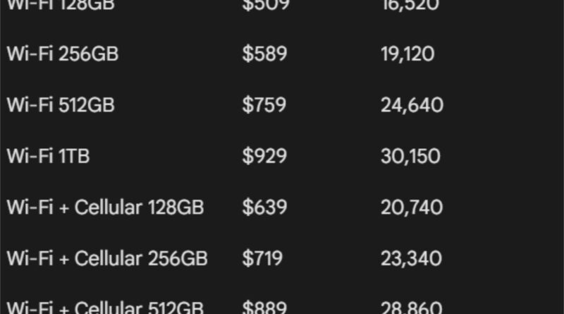 The pricing for the refurbished iPad Air M3 is as follows: