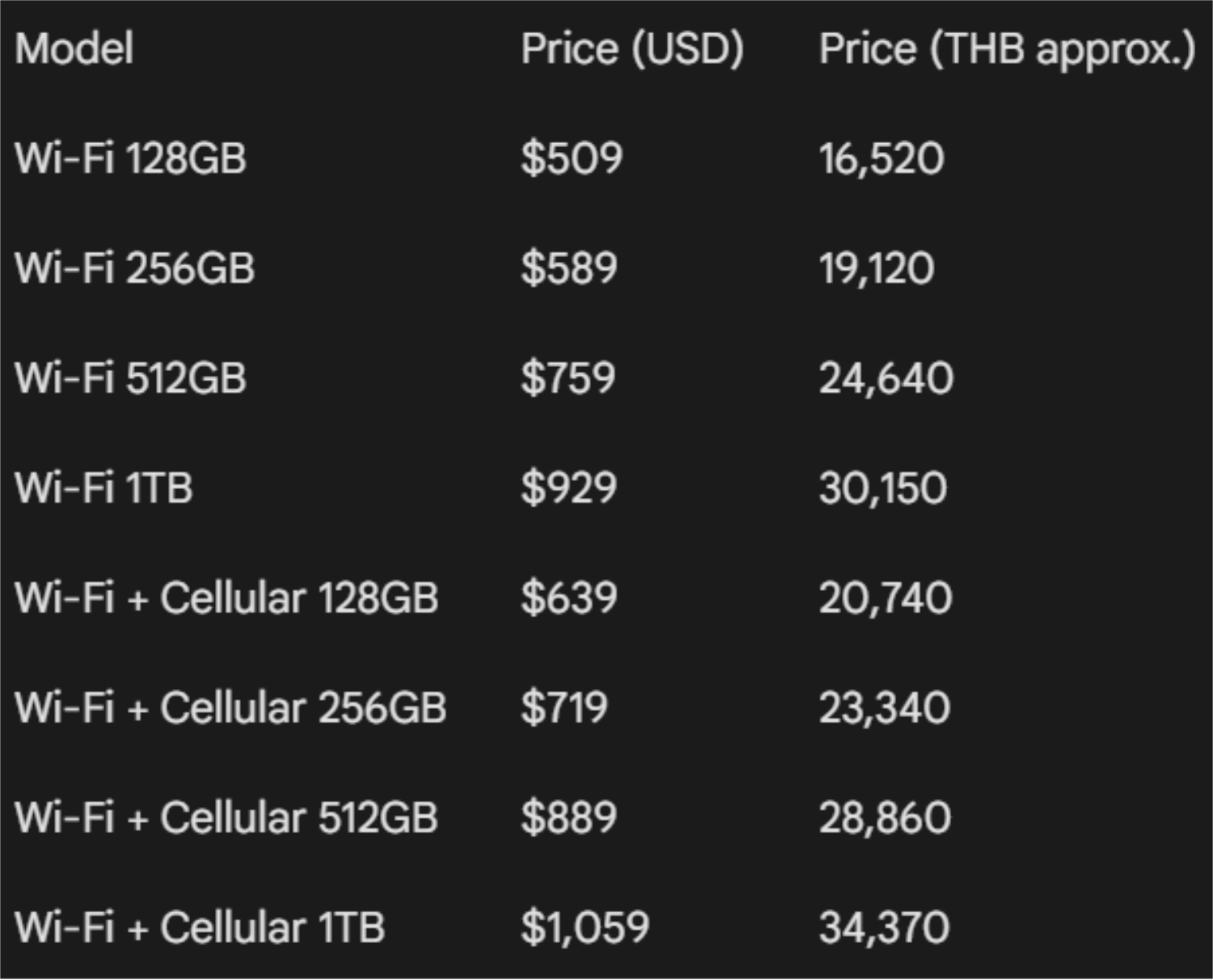 The refurbished iPad Air M3 devices come with a one-year warranty from Apple. It remains to be seen whether Apple will introduce these models for sale in Thailand.