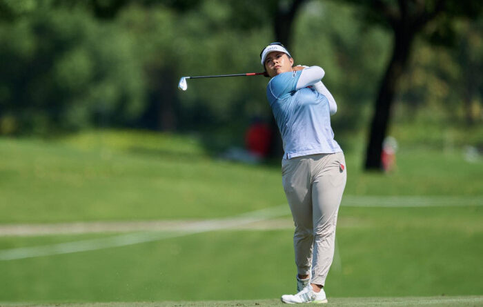 Lee said she navigated the difficult bumpy greens at Qizhong as best she could with her broomstick-style putter. Most of the greens are brown and patchy due to the extreme heat and humidity of Shanghai.