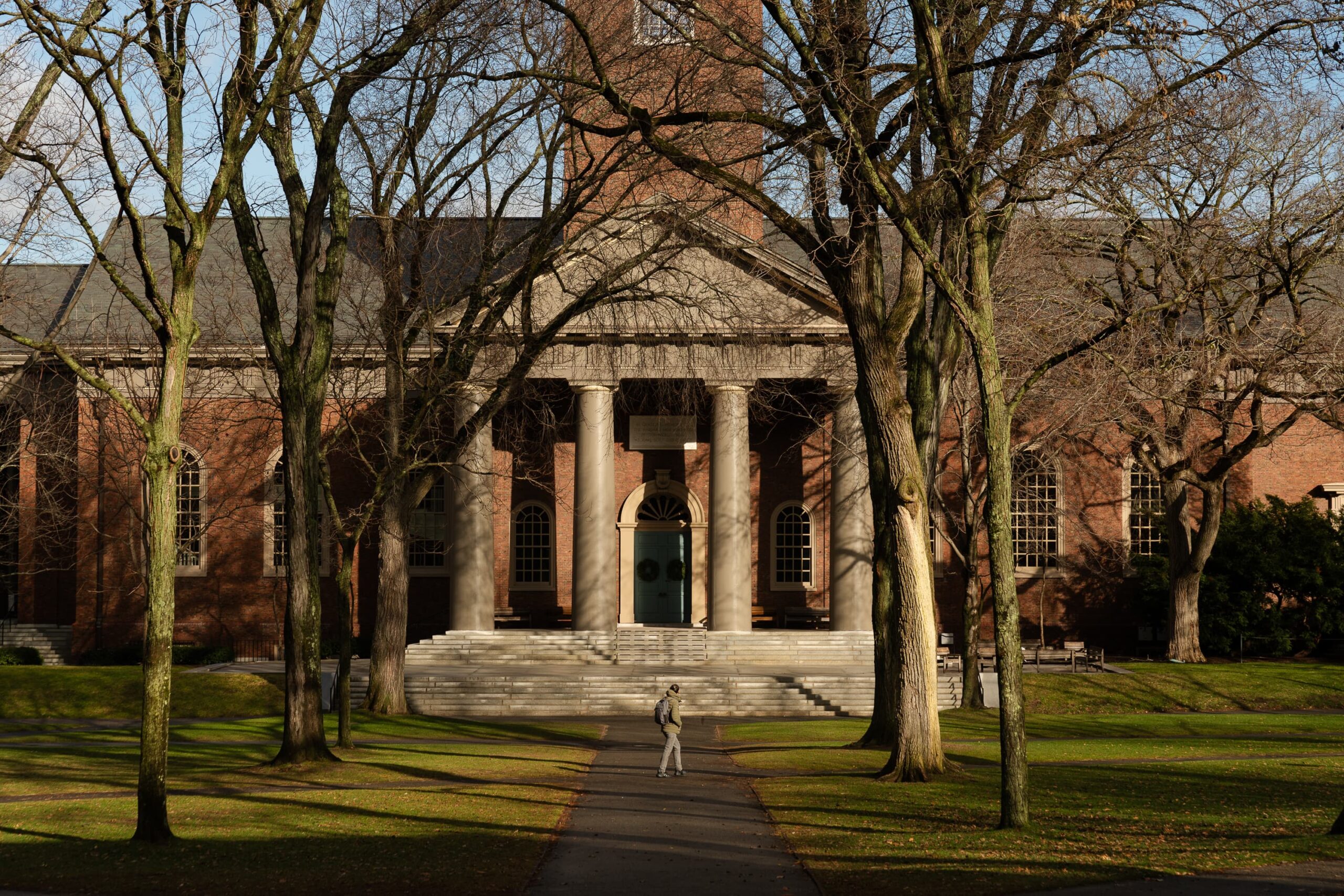 A student walks through the Harvard University campus in Cambridge, Massachusetts, Dec. 17, 2024.