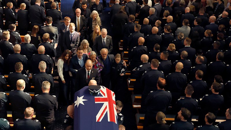 Australia news LIVE: Slain police officer mourned by hundreds in Melbourne; Rudd praises Albanese’s ‘warm’ call with Trump