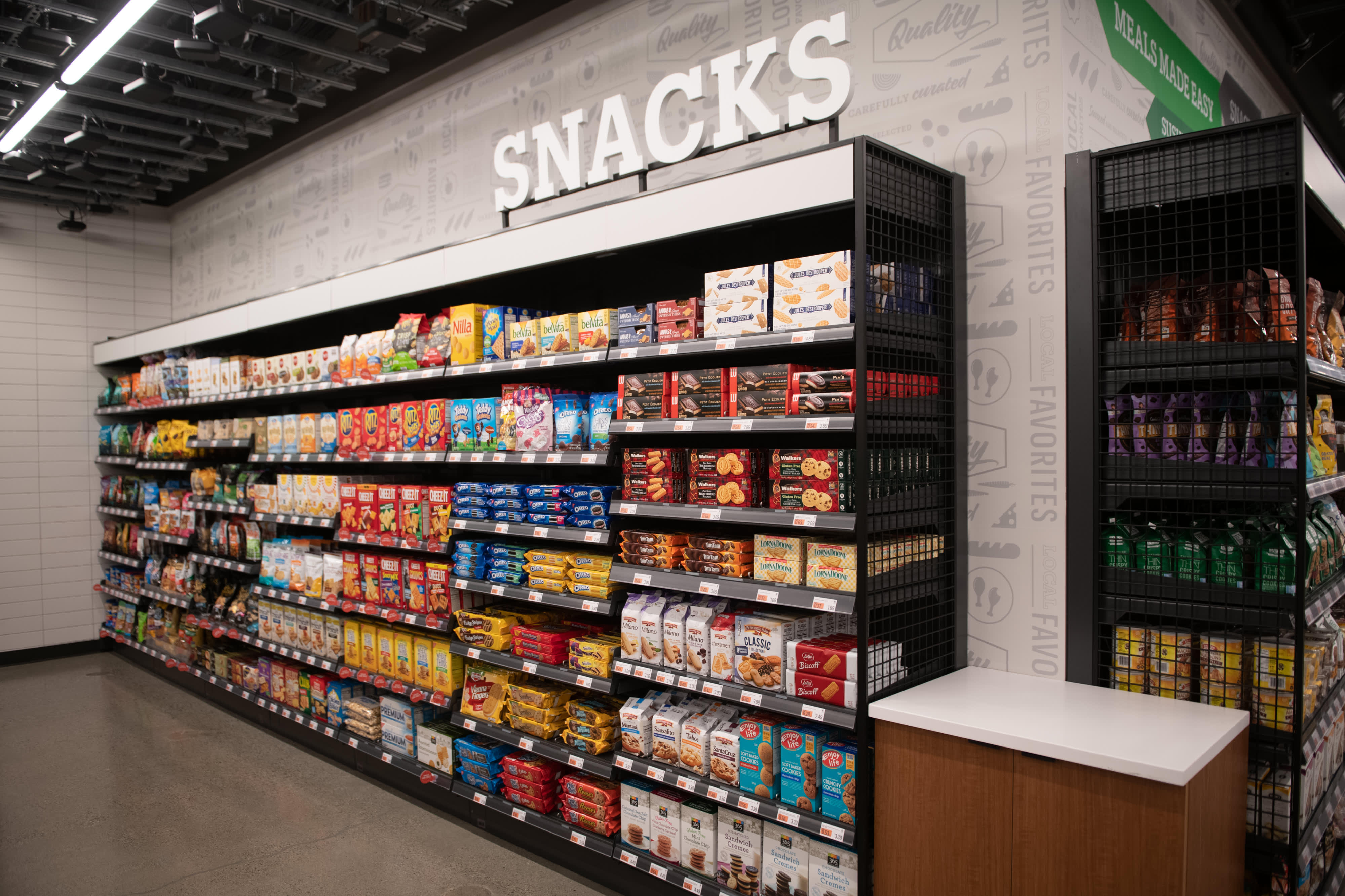 The snack aisle is seen during a tour of a new Amazon Go store in the Capitol Hill neighborhood of Seattle, Washington, U.S., on Monday, Feb. 24, 2020.