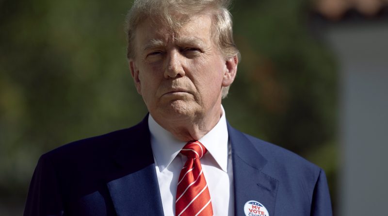 Read moreFormer U.S. President Donald Trump speaks to the media after voting at a polling station setup in the Morton and