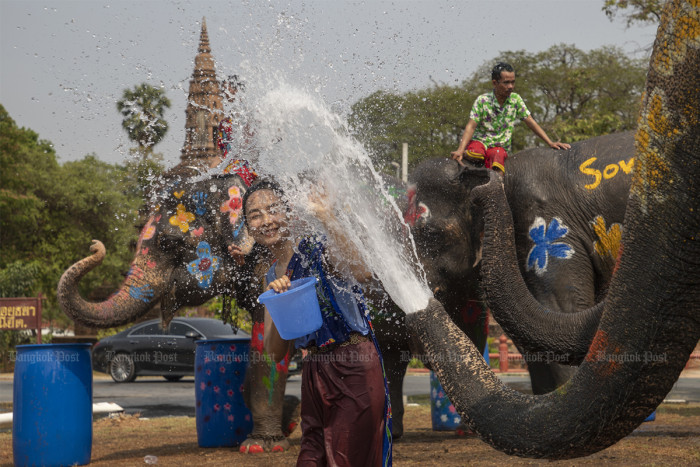 Ahead of Songkran, colourfully painted elephants and their mahouts invite the public to celebrate the water splashing festival at the Ayutthaya Elephant Palace and the Royal Kraal in Ayutthaya province from April 13 to 15, 2024.