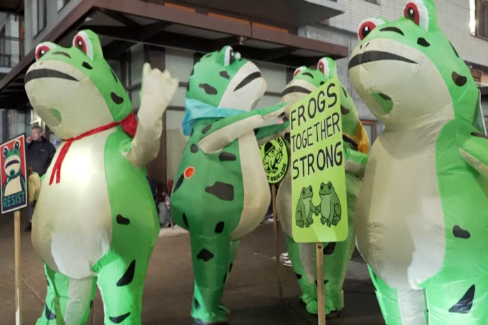 Dozens of protesters, many clad in inflatable costumes, faced off with police outside the local Immigration and Customs Enforcement (ICE) in Portland, Oregon on Saturday (October 11) evening, as they continued to demonstrate against U.S. President Donald Trump’s mass deportation policies. – REUTERS