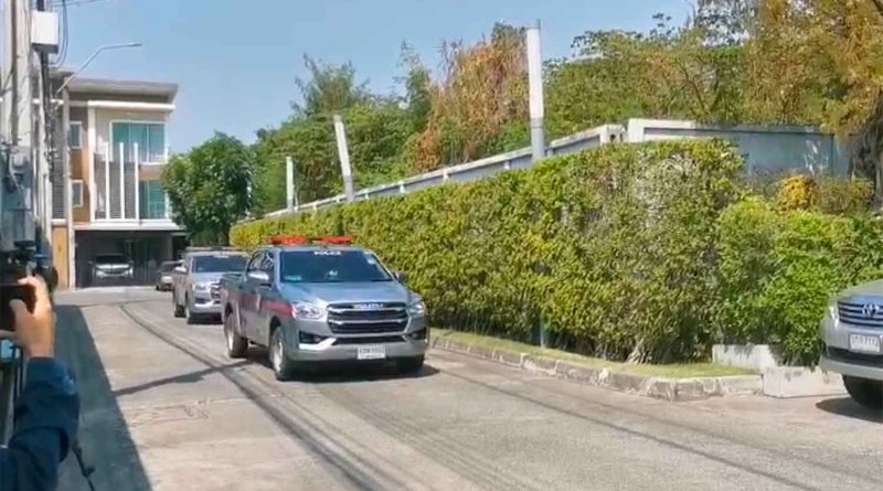 Police from Thung Song Hong station are seen at the housing estate of Pol Gen Surachate Hakparn in Laksi district of Bangkok on Sunday. (Screenshot)