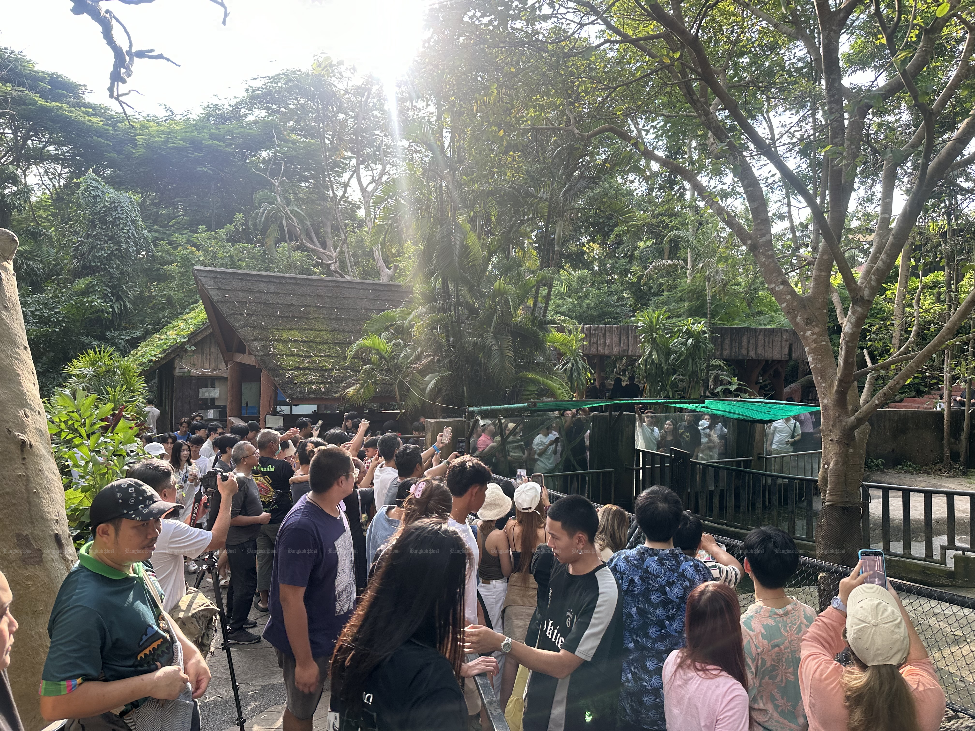 Traffic to the zoo located about 35km northeast of Pattaya was backed up by two hours on Saturday morning, as over 12,000 people arrived. In response, zoo staff imposed a five-minute viewing limit, with groups capped at 30 to 50 people at a time to manage the crowds.