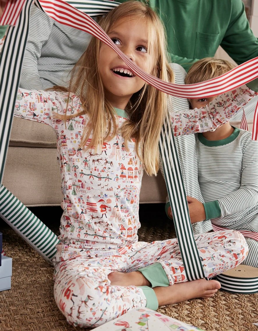 Pajamas with reindeer, polar bears, dancers or beagles. From $22.