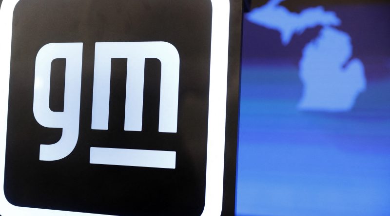 A General Motors sign is seen during an event on January 25, 2022 in Lansing, Michigan. – General Motors will create 4,000 new jobs and retaining 1,000, and significantly increasing battery cell and electric truck manufacturing capacity.