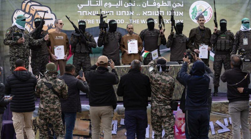 Hamas claims it has treated its captives benevolently, but many Israelis saw the images as almost unbearable evidence to the contrary. Three frail, painfully thin hostages were paraded on a stage before a crowd in the city of Deir al-Balah, each holding a Hamas-issued “release certificate,” and made to mouth words written for them.