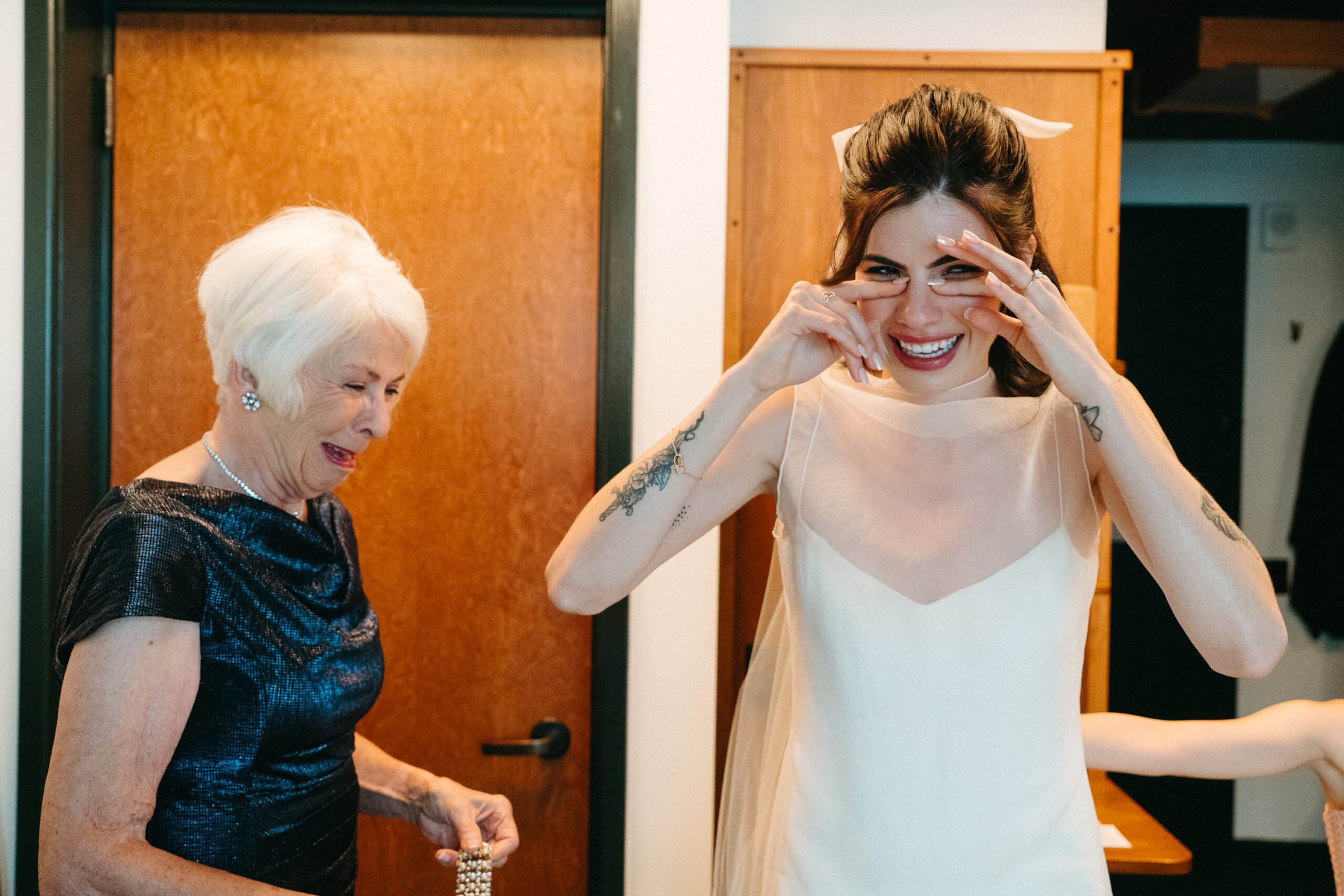 Marin: My grandma wore a headpiece to her wedding. I added it to my own veil and was excited to show her. She got married 60 years before I did, almost to the day, and she and my grandfather have such a beautiful love story.