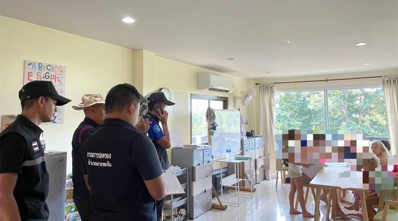 Noppadol Khaomali, chief of Koh Phangan district, led local officials, police, immigration officers and officials from concerned agencies to inspect a house in tambon Koh Phangan in this southern province on Thursday. The premises were illegally operated as a nursery for foreign children.