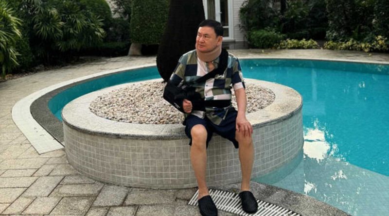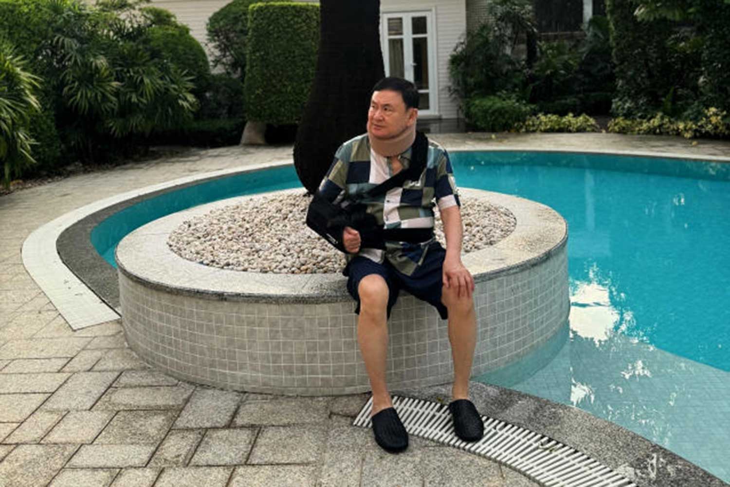 Former prime minister Thaksin Shinawatra relaxes by the swimming pool at his Chan Song La residence on soi Charan Sanitwong 39 in Bang Phlat district after being paroled on Feb 18. (Photo from the Instagram account of Paetongtarn Shinawatra)