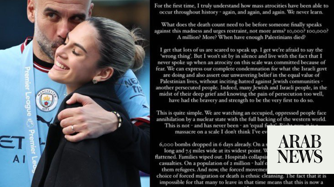BEIRUT: A powerful post in which a fashion content creator called Eva has decried the Israeli-Palestine war was reposted by Manchester City coach Pep Guardiola’s daughter and has garnered more than 140,000 views.