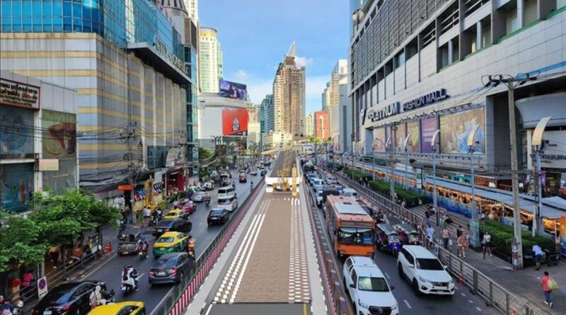 During an initial preparatory phase, traffic will be diverted while motorists can still cross the Pratunam intersection at ground level under traffic signals. Two inbound lanes and three outbound lanes on Phetchaburi Road will remain open.