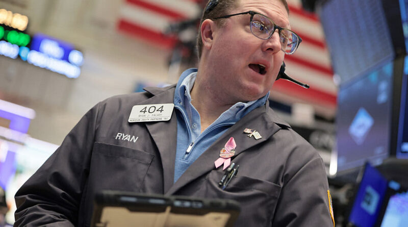 A trader works on the floor of the New York Stock Exchange during morning trading on March 25, 2026 in New York City.