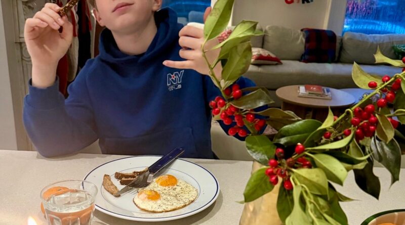 Anton and his cousin Jimmy at Christmas dinner, before clearing the table.