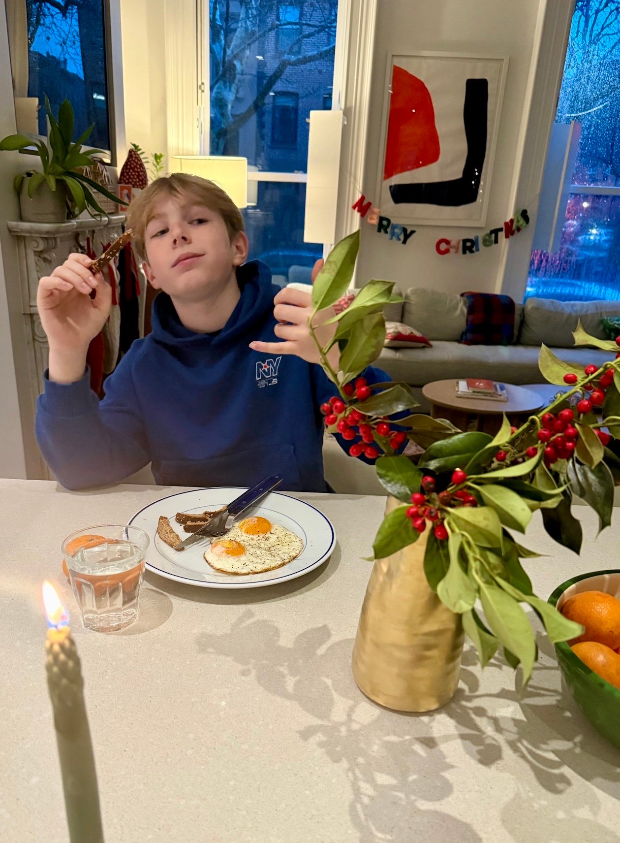 Anton and his cousin Jimmy at Christmas dinner, before clearing the table.