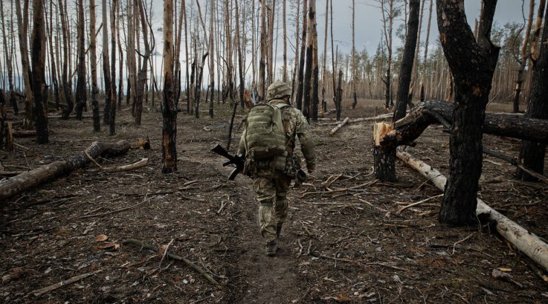 Nestled in a dense forest, the Ukrainian military base appears abandoned and destroyed, its command center a burned-out husk, a casualty of a Russian missile barrage early in the war.