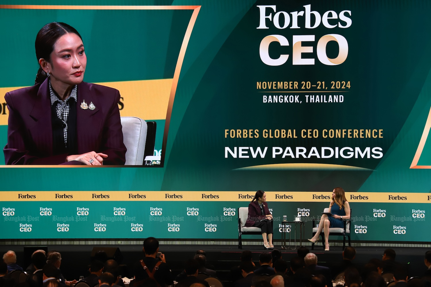Ms Paetongtarn outlined her short- and long-term vision for the country under her leadership during a one-on-one dialogue with Moira Forbes, executive vice-president of Forbes Media. (Forbes Thailand is published by Post International Media Co Ltd, a Bangkok Post affiliate)