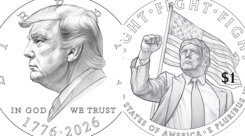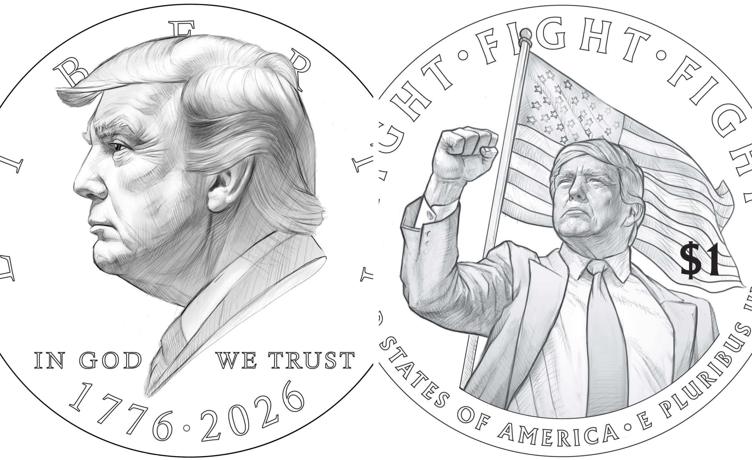 A first draft of that coin, which will mark the semiquincentennial anniversary of the nation’s founding, depicts Trump’s head in profile on one side, above the words “IN GOD WE TRUST” and the dates 1776 and 2026.