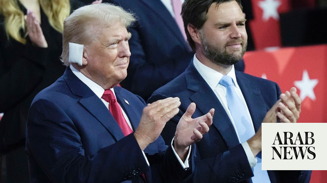 MILWAUKEE: Two days after surviving an attempted assassination, former President Donald Trump appeared triumphantly at the Republican National Convention’s opening night with a bandage over his right ear, the latest compelling scene in a presidential campaign already defined by dramatic turns.