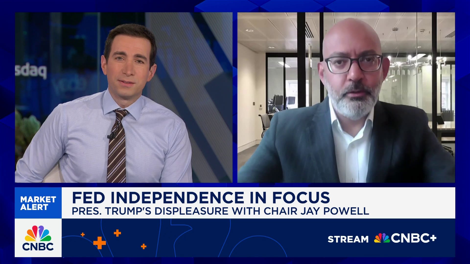 “If you start to raise questions about Federal Reserve independence, you are raising the bar for the Federal Reserve to cut. If you actually did try to remove the Federal Reserve chairman, I think you would see a severe reaction in markets with yields higher, dollars lower and equities selling off,” Guha said on “Squawk Box.”