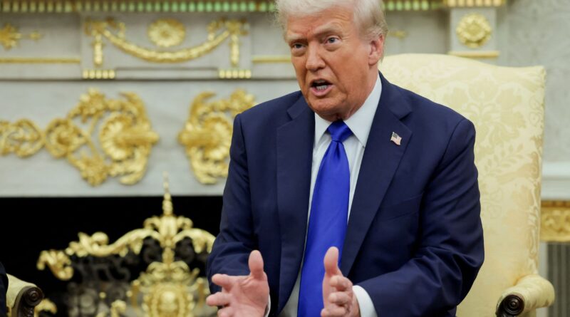 U.S. President Donald Trump speaks as he and Canada’s Prime Minister Mark Carney (not pictured) meet in the Oval Office at the White House in Washington, D.C., U.S., Oct. 7, 2025.