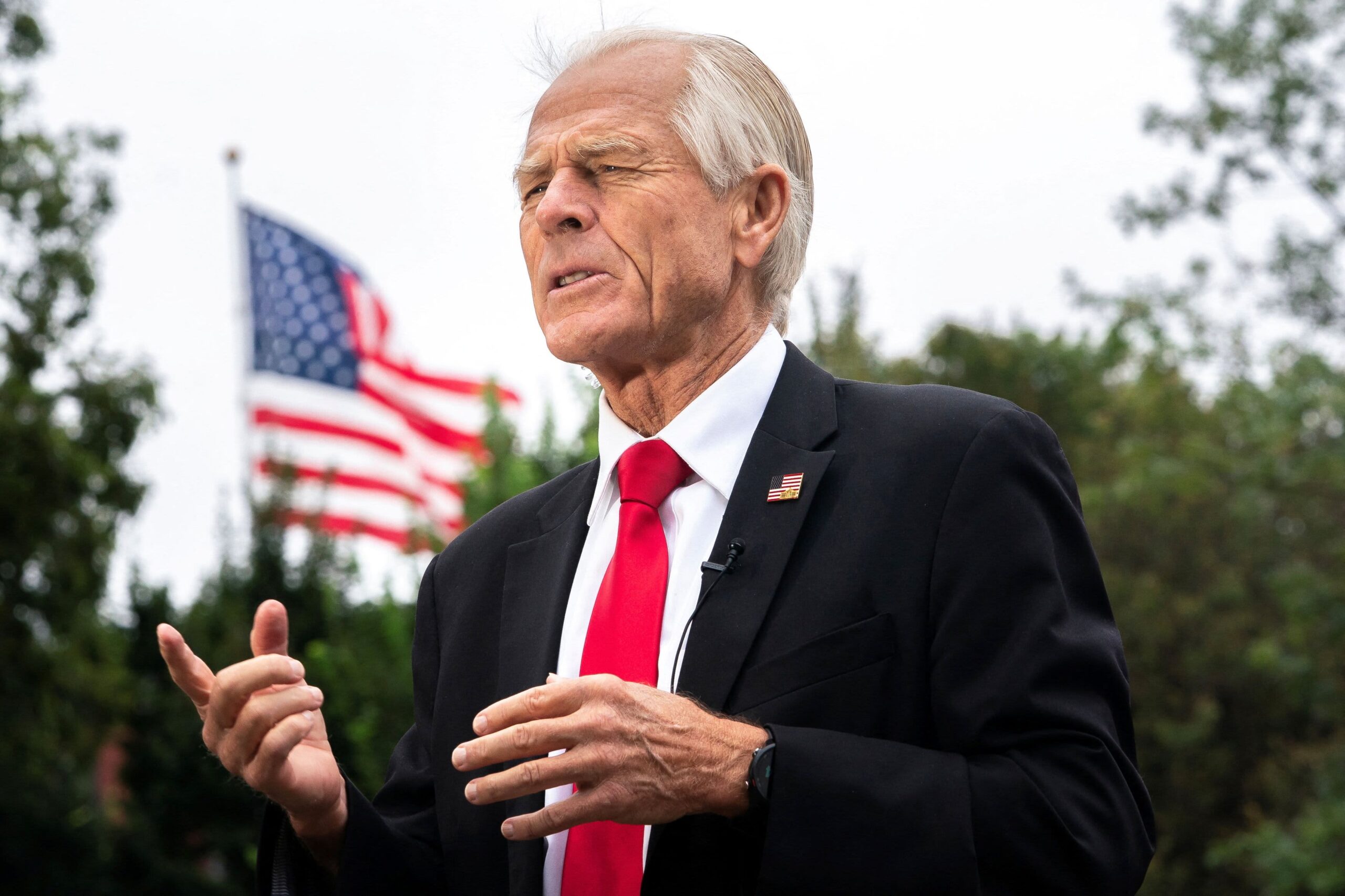 White House trade advisor Peter Navarro speaks to members of the media near the West Wing of the White House in Washington, D.C., U.S., August 21, 2025.