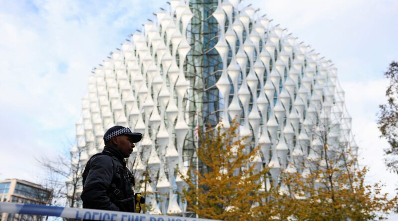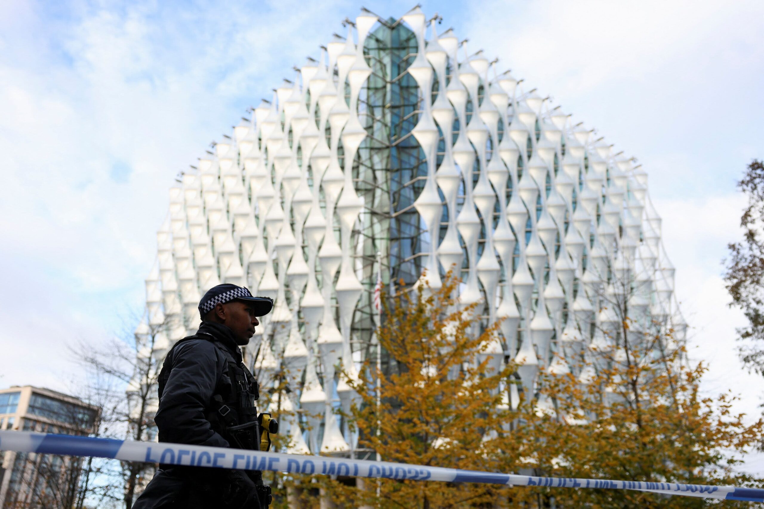 A police officer stands in front of the U.S. Embassy, amid ongoing investigation following an incident in London, Britain, November 22, 2024.