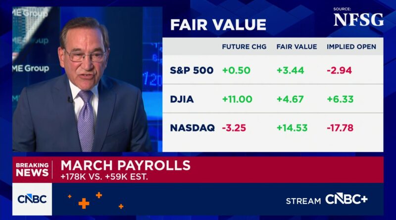 Nonfarm payrolls rose a seasonally adjusted 178,000 during the month, a reversal from the 133,000 decline in February and better than the Dow Jones consensus estimate for 59,000, the Bureau of Labor Statistics reported Friday. February’s number was revised down by 41,000 while January was revised up by 34,000 to 160,000, putting the three-month average around 68,000.