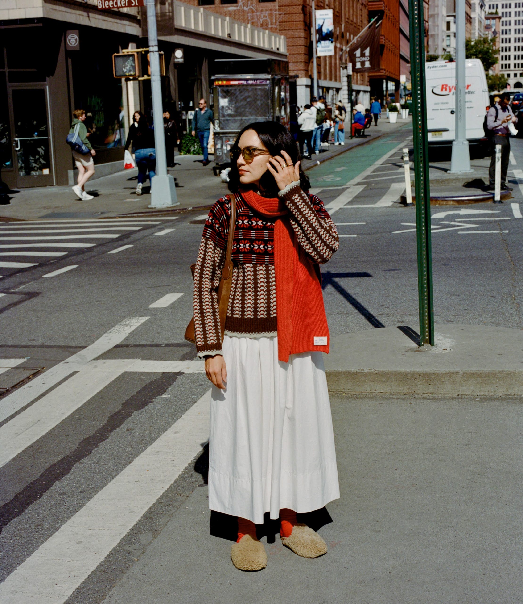 “This cotton midi skirt, from a Korean brand called Muarmus, carries me from summer to winter, plus all the awkward weather months in between. The double lining gives it volume and shape, so it’s a little more interesting than your average white skirt.”