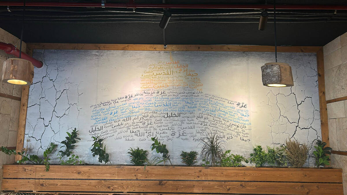 Although the Palestinian identity is clearly evident at this location through the decorations hanging from the ceiling, for example, the interior seems forced and cluttered with random pieces, such as paintings, quotes, and signs. (AN photo by Haifa Alshammari)