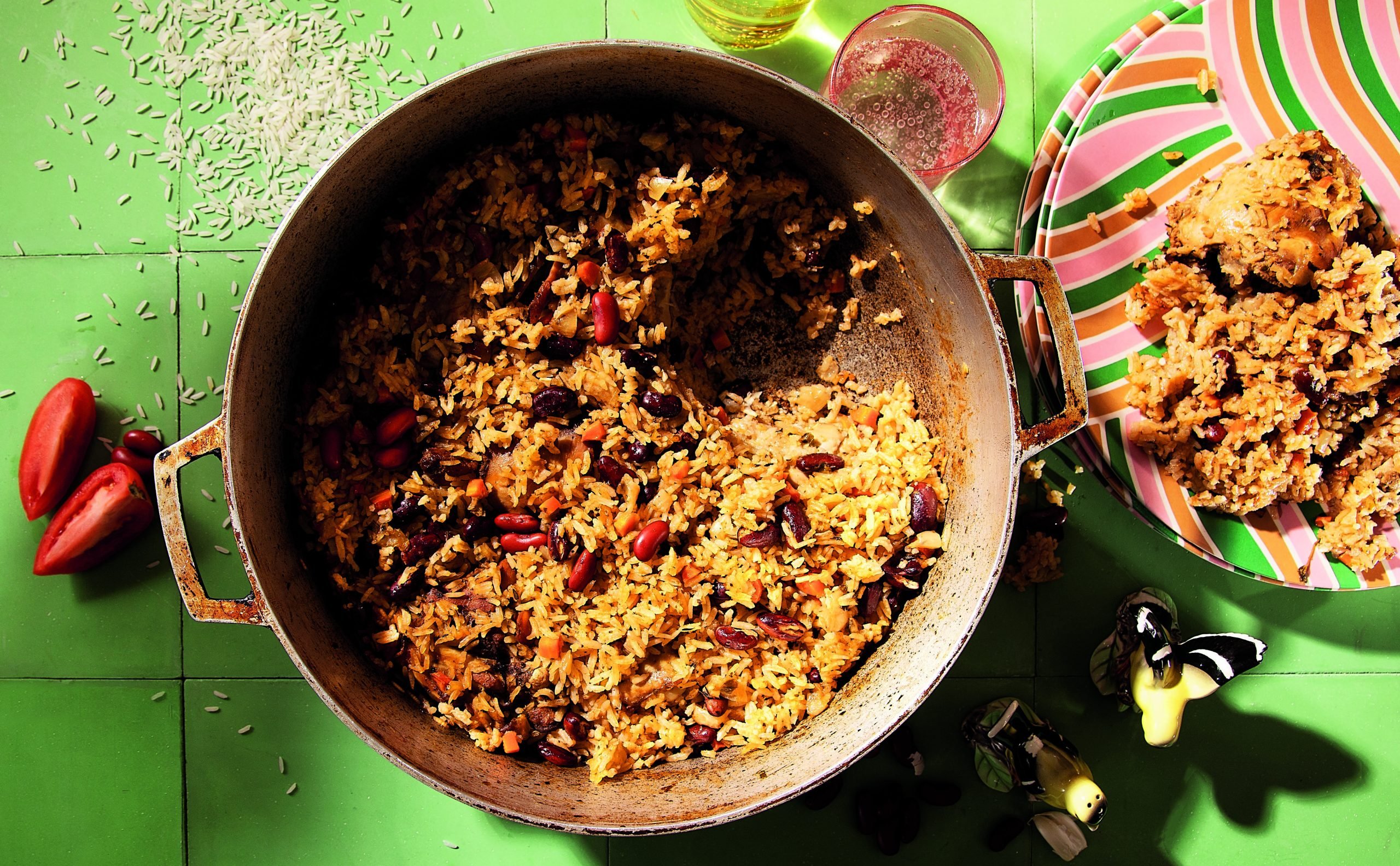 And Enston makes the stories personal. The pholourie (deep-fried split pea fritters) was “100% one of my favorite reasons for visiting Trinidad.” For Soup Jomou, Haiti’s “Freedom Soup,” she enlists Haitian-American chef Cybille St.Aude-Tate, who expresses awe at how long her people have been making it. And — my favorite part — many of the recipes weave through the joyous memories of her family’s home cooking, like this pelau, below.
